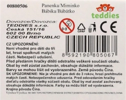 A sapkás textilruhácska kellemes tapintású, a gyerekek könnyen boldogulnak vele. Támogatja a finommotorika és az önállóság fejlődését.
