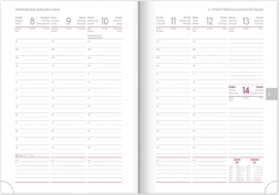 A napló praktikusság és stílus hangsúlyával készült. A sötétkék borítás ezüst évszámmal biztosítja a professzionális megjelenést minden asztalon.