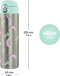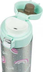 Gyakorlatias termos palack intuitív nyitással és beépített szilikon ivószeleppe, ideális választás gyermekek számára az általános iskola alsó tagozatára, valamint óvodásoknak, könnyű kezelhetősége miatt.