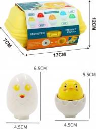 Minden tojás két részből áll: felső héjból és alsó héjból egy csibe figurával összekötve. A gyermekek feladata nemcsak a megfelelő tojás héját megtalálni, hanem azt a formában is elhelyezni a megfelelő helyre. Minden tojás alsó felén egyedi geometriai forma található, ami megfelel a doboz egyik nyílásának. A cél szórakoztató arckifejezések segítségével a gyerekek érzelmek felismerésére és megnevezésére taníthatók meg.