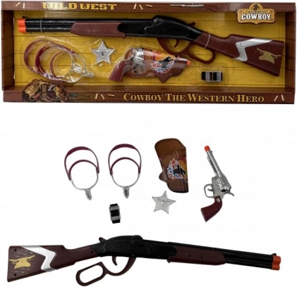 - Nagy puska, revolver tokban, sarkantyúk, seriff jelvény