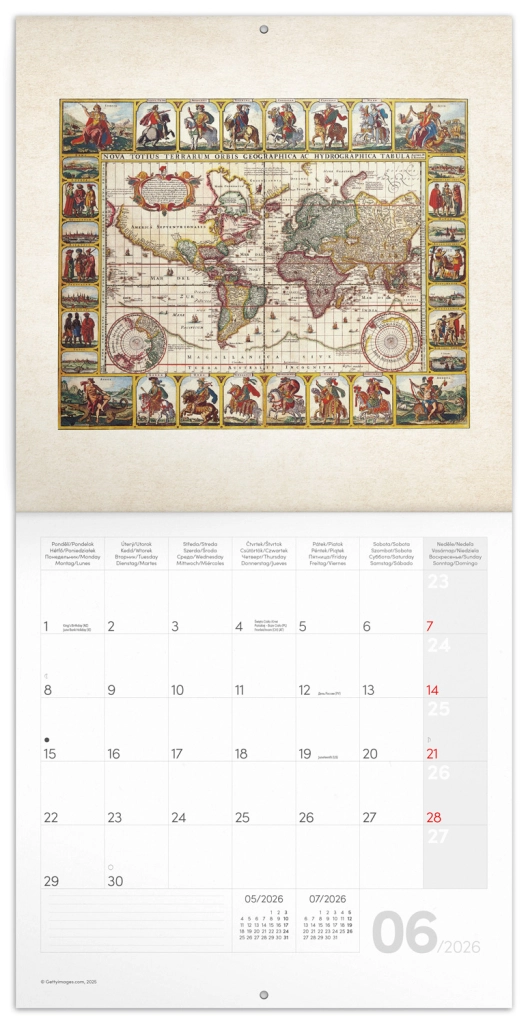 A Jegyzetnaptár Régi térképek 2026 tizenkét régi térkép illusztrációt kínál, és ideális útmutató a tervezéshez. Ez a praktikus naptár környezetbarát szempontok figyelembevételével készült, része a Plastic Free kollekciónak.