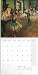 Edgar Degas jegyzetnaptár 2026 tizenkét mesteri alkotást kínál Edgar Degastól, áttekinthető naptárral, jegyzetek számára kialakított hellyel és fontos ünnepekkel.