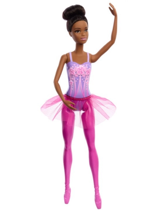 A Barbie balerina a kis táncosokat és a gyűjtőket egyaránt elbűvöli. Klasszikus balett-öltözete finom virágdíszítéssel és rózsaszín–lila hangolással támogatja a fantáziát és inspirál a színpadi játékra. A könnyű, áttetsző tütü szoknya levehető, így a megjelenés könnyedén a hangulathoz igazítható.
