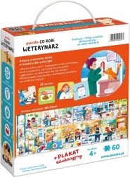 Mit Csinál az Állatorvos Puzzle egy oktatási készlet kíváncsi óvodásoknak és állatkedvelőknek. Tartalmaz egy 60 darabos puzzle-t, 32 kiegészítő képet és egy oktatási plakátot, melyet egy állatorvossal együttműködve készítettek.