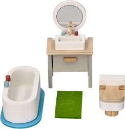 A babaház fürdőszobai készlete egy elegáns megjelenést biztosít, és segít fejleszteni a gyermekek fantáziáját játék során. A készlet tartalmaz: