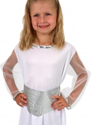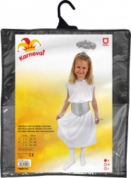 Ajándékozza meg gyermekeit örömmel és szépséggel ezzel az angyali jelmezzel, mely garantáltan elbűvöl minden karneválon vagy ünnepségen. A jelmez kényelmes anyagból készült, amely biztosítja, hogy gyermeke kényelmesen érezze magát viselése közben. Az ezüst-fehér kombinációnak és a bájos részleteknek, mint a glória és a öv, köszönhetően kislánya valódi angyalnak tűnik majd.