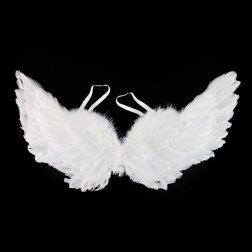 Könnyű és elegáns angyalszárnyak fehér tollakkal borítva, ideális kiegészítő angyal jelmezekhez. Kiváló választás Mikulás, karácsonyi összejövetelek, fotózások vagy karneválok alkalmával. Rugalmas pántok biztosítják a kényelmes viseletet.