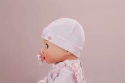 A 43 cm-es Annabell puha testtel rendelkezik, ami tökéletes az öleléshez és a gyengéd játékhoz. Az interaktív technológia természetes reakciókat biztosít – a cumi szopása vagy a cumisüvegből ivás közben mozgatja a száját, és helyzettől függően becsukja vagy kinyitja a szemét. A megnyugtató ringatásnak köszönhetően két irányban is könnyen elaltatható.