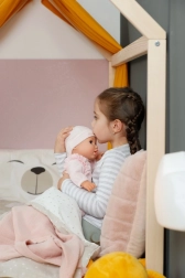 Ismerkedj meg a BABY born Annabell 43 cm babával – puha, ölelni való barát a mindennapi játékhoz és bújáshoz. A elektronikus funkcióknak köszönhetően élethűen mozgatja a száját, nyitja és csukja a szemét, reagál a cumira és a cumisüvegből való etetésre, ringatással elaltatható, és vicces hangokkal lep meg csiklandozáskor vagy a „babatorna” közben.
