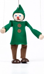 Ez a minőségi vadász bábu gondosan készül fából, textil ruhácskával. Az egyszerű, zsinórok segítségével történő irányításnak köszönhetően a gyerekek könnyedén megmozgatják a karokat és életre keltik a figurát. Kiválóan alkalmas otthoni bábszínházhoz és iskolai előadásokhoz is.