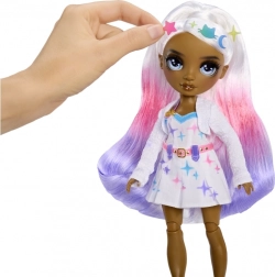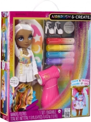 A RAINBOW HIGH Air Brush baba egy „üres vászon”, amelyet a gyerekek a saját elképzeléseik szerint személyre szabhatnak. A készlet tartalmaz egy airbrush kézi eszközt a filctollakhoz, négy lemosható színes filctollat (piros, sárga, kék, lila), sablonokat az egyszerű díszítéshez, valamint teljes fehér öltözéket cipőkkel együtt. A színek permetezővel vagy közvetlenül a tollal is felvihetők a precíz részletekhez – a hajra, ruhára és kiegészítőkre.