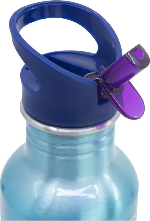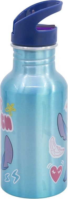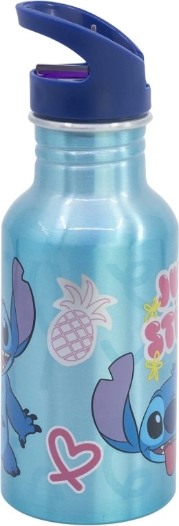 Stílusos és strapabíró alumínium palack STITCH mintával, ideális iskolába, sporthoz és kirándulásokhoz. Csavaros kupakkal, kiömlést gátló szívószállal és praktikus hordfogantyúval rendelkezik. Anyaga BPA-mentes, mindennapos használatra biztonságos.