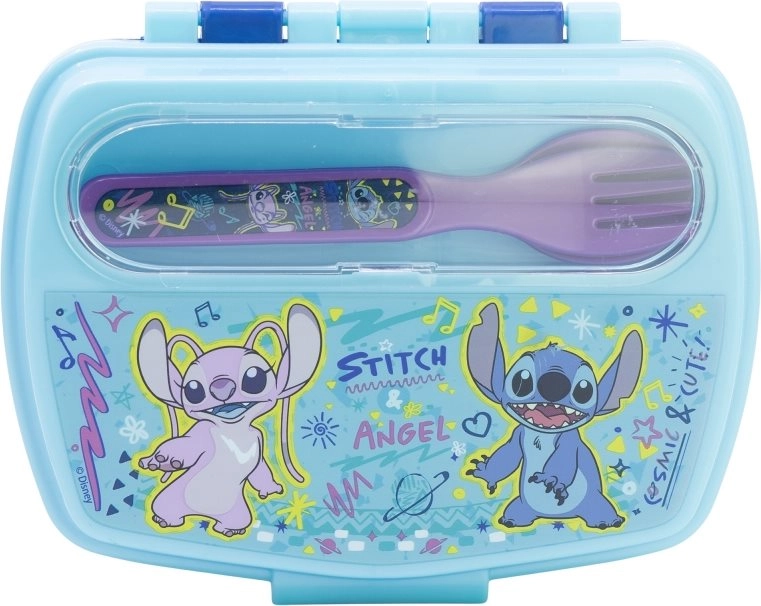 Praktikus uzsonnás doboz villával és kanállal a közkedvelt ANGEL A STITCH mintával, kényelmes mindennapi használatra. Ütés- és leejtésálló, könnyen elfér az iskolatáskában vagy hátizsákban, és BPA-mentes, így gyermekek számára is biztonságos.