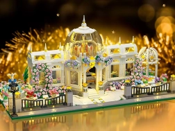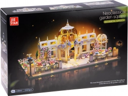 Fedezd fel a klasszikus vonalak harmóniáját és a kerti romantika báját. Az építőkészlet segítségével részletesen kidolgozott pavilont állíthatsz össze szimmetrikus homlokzatokkal, üveg betétekkel és gazdag virágdíszítéssel. A középpontban egy impozáns, átlátszó kupola áll, amely alatt az enteriőr és az exteriőr minden apró részlete érvényesül.