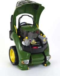 Ez a részletgazdag, a traktor JOHN DEERE elejét mintázó modell ötvözi az ülős kismotorozást az építőjátékkal. A motorháztető felnyitása után a gyerekeket gazdagon felszerelt motortér várja csavarokkal, burkolatokkal és szétszerelhető elemekkel. A motor és a duda fényei, hangjai fokozzák a valósághű játékélményt.