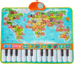 A szőnyeg ideális az óvodások számára, akik szeretnék felfedezni a zenét és a körülöttük lévő világot. Strapabíró kialakításának és a kontinensek, állatok és betűk jól látható illusztrációinak köszönhetően tökéletes választás otthoni tanuláshoz és szórakozáshoz.