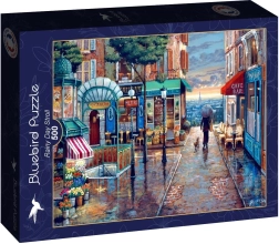 Stílusos puzzle a város esős, lírai hangulatával, amely egyszerre nyújt kellemes kihívást és kikapcsolódást. A kiegyensúlyozott darabszám kényelmes kirakást tesz lehetővé, miközben élvezheti a részletgazdag illusztrációt és a harmonikus színeket.