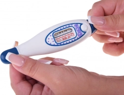 A sztetoszkóp szívdobbanás-hanggal, a világító lámpácska és a hőmérő forgatható hőfokjelzője hitelessé teszik a játékot, és órákig szórakoztatnak.