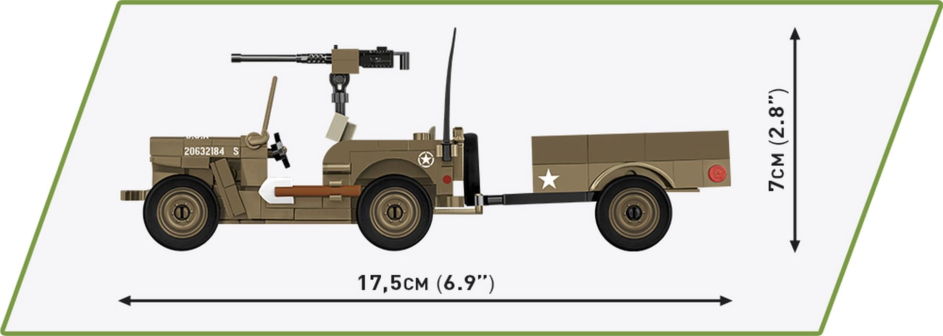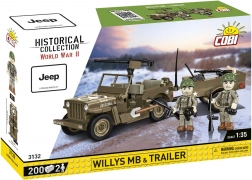 A második világháború legendás terepjárója a COBI építőkészletében kel életre: Jeep WILLYS MB utánfutóval. A modell kiemelkedik autentikus formáival, katonai színezésével és kiegészítőivel, beleértve a forgatható géppuskát, szerszámokat és a figurák fegyvereit. A minőségi kockáknak köszönhetően stabil, így intenzív játékra és vitrines kiállításra egyaránt alkalmas.