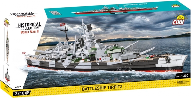 A Historical Collection sorozat COBI TIRPITZ készlete hűen idézi meg a második világháború híres német csatahajóját – a BISMARCK testvérhajóját. Az 1:300 méretarány valósághű arányokat, jellegzetes álcafestést és gazdag részleteket nyújt, beleértve a tornyokat, radarárbócokat és csónakokat. A modell impozáns, 87 cm-es hosszával kiválóan mutat polcon vagy vitrinekben.