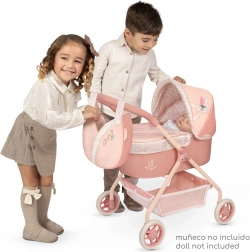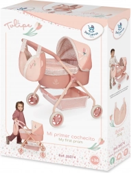 A Tulipe kollekció bájos babakocsija a gyönyörű spanyol dizájnt a mindennapi játékhoz szükséges praktikummal ötvözi. Finom lazacpasztell színei, virágminta és a tulipán alakú tematikus táska remek ajándékká teszik 3 éves kortól.