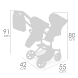 Játékos és praktikus – ez az összecsukható babakocsi két baba kényelmes szállítására készült. A dönthető és levehető üléseknek köszönhetően a babák a menetirányba nézve vagy azzal szemben is elhelyezhetők. A könnyű fém–műanyag váz, a puha textíliák és a SOPHIE kollekció finom, romantikus megjelenése remek kiegészítővé teszik a gyerekszobába.
