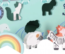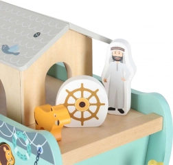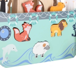 Az állatok a hajó oldalán lévő, pontosan kialakított nyílásokba illeszthetők. A gyerekek így természetes és szórakoztató módon gyakorolják a formák felismerését, a türelmet és a finommotorikát.