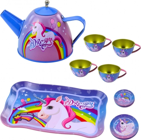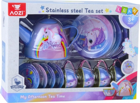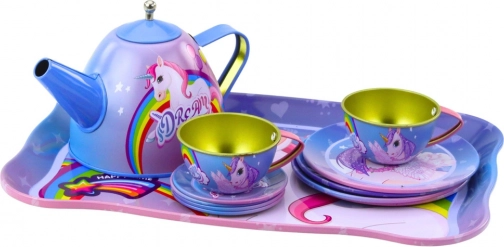 Varázslatos fém teáskészlet unikornis motívummal, amely órákig tartó kreatív játékot nyújt a gyerekeknek. Tartós fémből készült, így biztonságos, masszív és hosszú élettartamú. Színes dizájnja támogatja a képzelet fejlesztését és a közös játék elsajátítását – ideális teázásokhoz barátokkal, babákkal és plüssökkel.