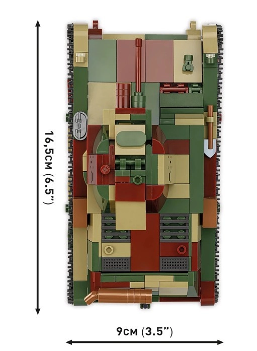 Építsd meg az ikonikus lengyel 7TP könnyű harckocsit 1:28 méretarányban egy készletből, amely 669 elemet és egy parancsnoki minifigurát tartalmaz. A modell a Lengyel Hadsereg Múzeumával együttműködésben készült, valósághű álcázást, forgatható tornyot, működő lánctalpat és tartós, matrica nélküli nyomatokat kínál. Remek választás történelemrajongóknak, gyűjtőknek és építőknek.