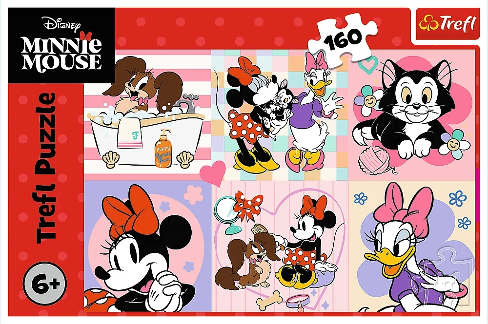 A közkedvelt Minnie színes, örömmel és fantáziával teli napot hoz. Ez a minőségi puzzle ideális közös pillanatokhoz és önálló kirakáshoz is. A 160 precízen vágott darab kellemes kihívást és örömöt kínál a kész kép befejezésekor.