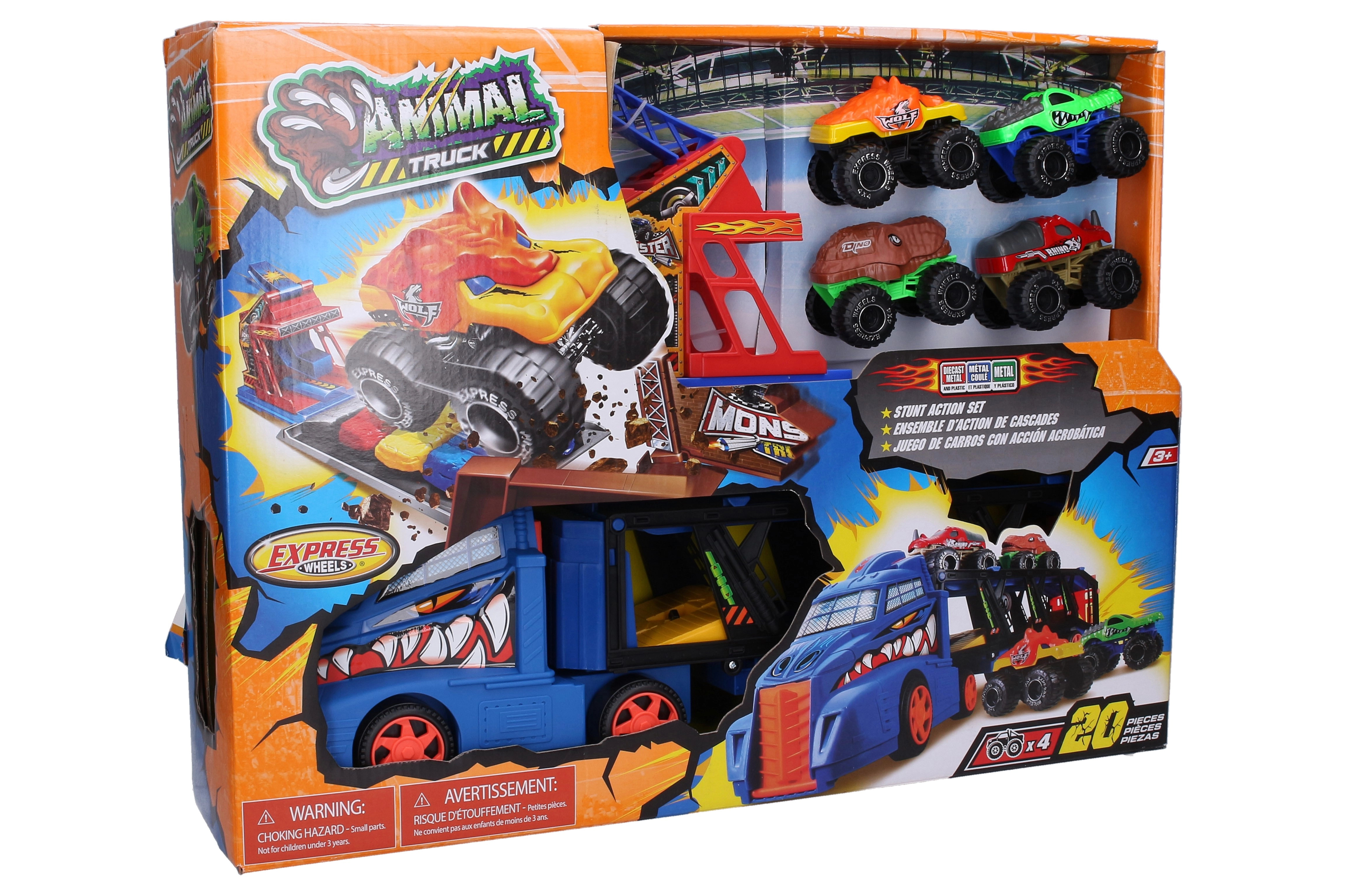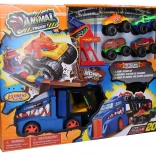 Ez a vontató integrált monster truck pályával dupla szórakozást kínál – hordozható kamionként és egyben kihajtható versenypályaként működik. A 45 cm-es hossz elegendő a látványos menetekhez, mégis könnyen hordozható. A gyors kinyitás és a könnyű elpakolás ideális játékká teszi gyerekszobába és útra egyaránt.
