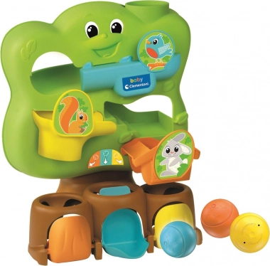 Fedezd fel a szórakoztató Baby Clementoni fácskát, amely 12 hónapos kortól tanítja a gyerekeknek az ok-okozati összefüggéseket. Dobd be a golyót a lombkoronába, és kövesd a színes pályáját a megfelelő ajtócskákig. A újrahasznosított műanyagból készült játék fejleszti a logikai gondolkodást, a finommotorikát és a érzékelést a különböző textúráknak és mozgó elemeknek köszönhetően.