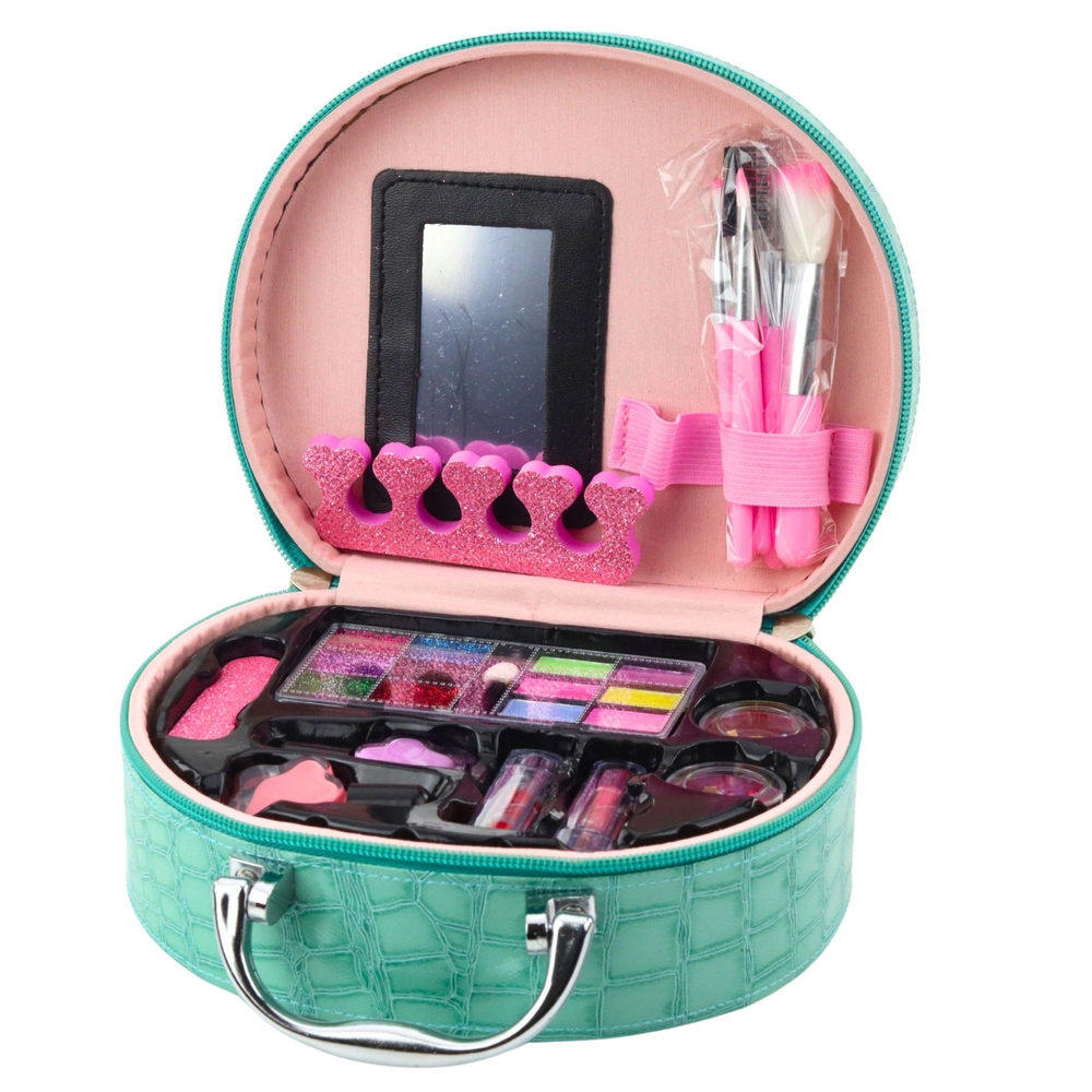 Ez a gyönyörű, gyerekeknek szánt kozmetikai szett fejleszti a fantáziát és a finommotorikát. Minden áttekinthetően elrendezve, füllel ellátott, zárható, kerek táskában kapott helyet, így könnyen hordozható és rendben tartható. Remek választás otthoni mókához, születésnapi bulikra és barátnős összejövetelekre.