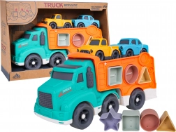 A készlet simán gurul a padlón, könnyen leválasztható pótkocsival rendelkezik, és szállíthatók rajta a kisautók és a formák is. Tökéletes az önálló játékhoz és a közös felfedezéshez kint és bent.