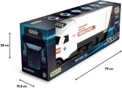 A MAGICK TRUCK ACTION – Mentő valósághű játék, amelyet igazi teherautók inspiráltak. Okos kialakításának köszönhetően sokféle játékélményt kínál: rakodás és kirakodás, a szerelvény átalakítása, illetve a pótkocsi önálló használata. A tartós és stabil felépítés hosszú távú használatra készült beltéren és kültéren egyaránt.