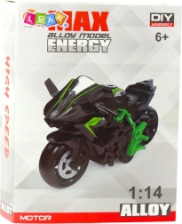 Fedezd fel az építés örömét a stílusos DIY motorkerékpár modellel 1:14 méretarányban. A fém és minőségi műanyag alkatrészek masszív és tartós szerkezetet biztosítanak, míg a feltűnő zöld–kék kombináció sportos megjelenést kölcsönöz a kész modellnek. Összeszerelés után a motor remek játékra és szobadísznek egyaránt.