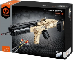 Ez a nagy terjedelmű építőkészlet minden műszaki modellek iránt rajongót lenyűgöz. A taktikai fegyverek által inspirált valósághű automata puska részletes felépítéssel és autentikus elemekkel rendelkezik, mint például a tár, a cső és a tus. Az átgondolt mechanikának köszönhetően élvezheti a mozgó alkatrészeket és a lövés-szimulációt biztonságos projektilokkal.