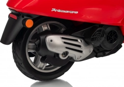 Stílusos gyerek elektromos robogó VESPA stílusban, amely valósághű megjelenésével, kényelmes ökobőr ülésével és stabil menetével (kisegítő kerekeknek köszönhetően) örömet szerez a kicsi motorosoknak. 2×35 W motorral, 12 V 7 Ah akkumulátorral, elöl-hátul LED világítással, valamint gazdag audio funkciókkal (MP3, Bluetooth, AUX) és akkumulátor-töltöttség jelzővel rendelkezik.