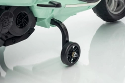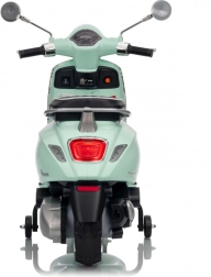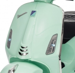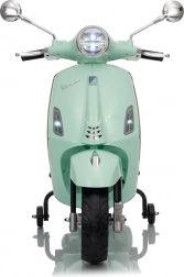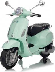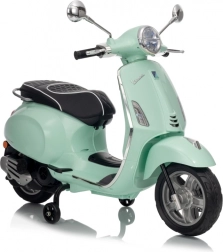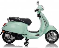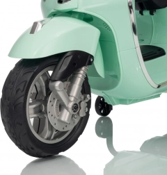 Stílusos gyerek elektromos roller, a VESPA Roma mentazöld színben, valósághű dizájnnal, két motorral 2×35 W, erős 12 V 7 Ah akkumulátorral és stabilizáló kerekekkel a biztonságos közlekedésért. A kényelmet a ökobőr ülés, csendes EVA kerekek és elöl-hátul LED lámpák biztosítják. Nem hiányzik a Bluetooth/MP3/AUX, kormányon elhelyezett hangok és duda, valamint a töltöttségjelző sem.