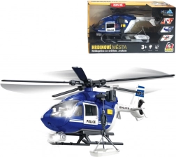 Átlátszó borítású pilótafülke, futósínek és jellegzetes rendőrségi jelölések. A minőségi műanyag az intenzív gyermeki játékot is bírja.