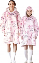 A kapucninak és a nagy elülső zsebnek hála tetőtől talpig melegen tart. Remek választás otthoni pihenéshez, számítógépes munkához, olvasáshoz és kültéri tevékenységekhez, például kempingezéshez vagy hűvösebb kerti estékhez. Az édességekkel, szivárványokkal és felhőkkel teli minta minden napot beragyog.