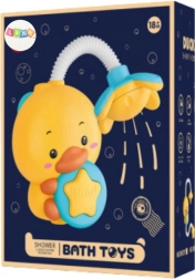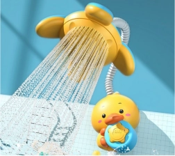 Ez az innovatív fürdőjáték örömet szerez a gyerekeknek és nyugalmat a szülőknek. A kacsácska stabilan rögzíthető a 4 erős tapadókorong segítségével a kádra vagy a csempére, és az on/off gomb megnyomása után vízsugár indul a zuhanyfejből. A rugalmas csőnek köszönhetően a gyermek könnyedén irányíthatja a vízsugarat, és biztonságos, játékos formában fedezheti fel a víz varázsát.
