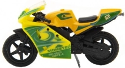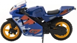 A versenymotor modell méretei 8 cm, és fém/műanyag kombinációból készült. Kiváló 3 éves kortól gyerekek számára, ösztönzi a kreatív és képzeletdús játékot. A motor kártyára csomagolva kapható, és több különböző színváltozatban elérhető.