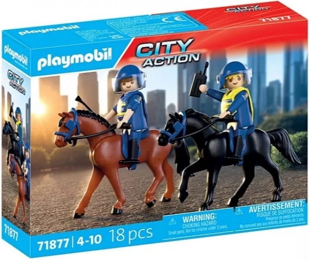 Fedezd fel a városi járőrözés dinamikus világát a PLAYMOBIL lovas párossal. A készlet részletgazdagon kidolgozott rendőrnő és rendőr figurát tartalmaz kék egyenruhában, valamint két lovat (barna és fekete) teljes felszereléssel. A gyerekek valósághű jeleneteket élhetnek át a mozgatható ízületeknek, a levehető sisakoknak és mellényeknek, valamint az autentikus kiegészítőknek, mint például a rádió és a pálca köszönhetően.