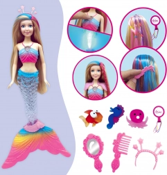 A csomag része egy gazdag kiegészítő készlet – kefe, fésű, tükör és koronák – amelyek támogatják a finommotorikát, kreativitást és az érzékelés fejlődését. A baba remek választás azoknak a gyerekeknek, akik szeretik a meséket, a színeket és a varázslatos hangulatot.