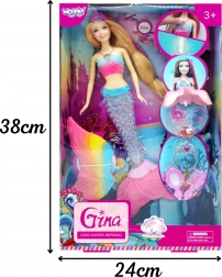 A WOOPIE Gina sellő baba mesés világot hoz a gyerekeknek, tele fényekkel, zenével és fantáziával. A szivárványos, mozgatható farok rózsaszín uszonnyal, a színes top és a hosszú szőke haj hívogat fésülésre, fonásra és formázásra. A beépített fény- és hangeffektek fokozzák a játékélményt, és a szobát víz alatti királysággá varázsolják.