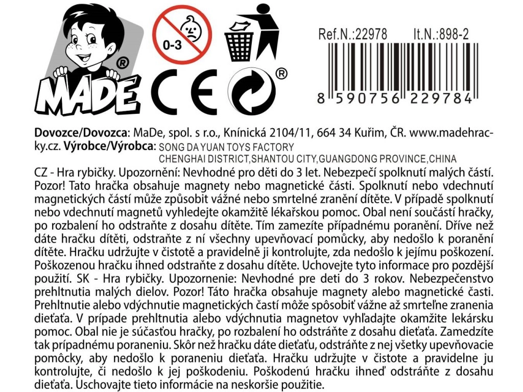 Szórakoztató gyerekjáték színes halacskákkal, elemek nélkül, amely kicsiknek és nagyoknak egyaránt örömet okoz. Fejleszti a finommotorikát, a kéz–szem koordinációt, és a azonnali szórakozást nyújt az egyszerű szabályoknak köszönhetően. A minőségi műanyag kivitel és a praktikus bliszteres csomagolás biztosítja a hosszú élettartamot és a könnyű tárolást.