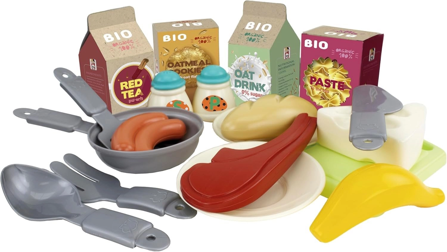 A készlet 19 darab kiegészítőt tartalmaz, köztük serpenyőt, tányérokat, evőeszközöket és „ételeket”, így a kicsik a kicsomagolás után azonnal kezdhetik a séf szerepét. A szerepjáték sosem unalmas, és természetes módon fejleszti a kreativitást, a kommunikációt és a felelősségérzetet.