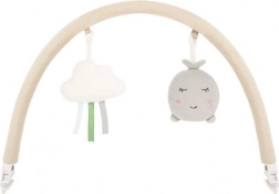 Az öt pontos övek, a puha párnácska és a csúszásgátló tappancsok biztonságban és kényelemben tartják a babát. A két játékkal ellátott játékhíd támogatja az érzékszervi fejlődést.